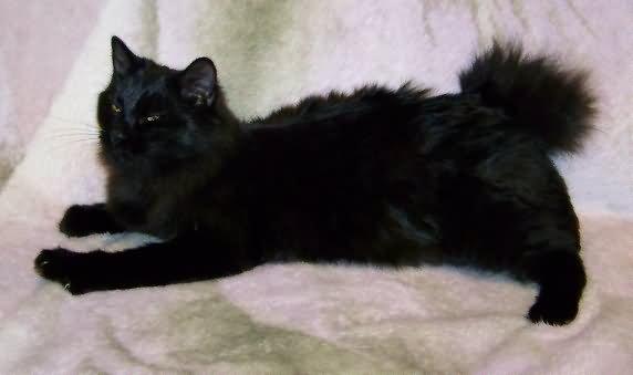 Black American Bobtails are sleek and striking, with coats that range from deep jet black to a soft charcoal sheen. Their dense fur catches the light beautifully, giving a glossy, almost metallic appearance. Golden or copper eyes often stand out vividly against the dark coat, adding to their mysterious and regal look.
